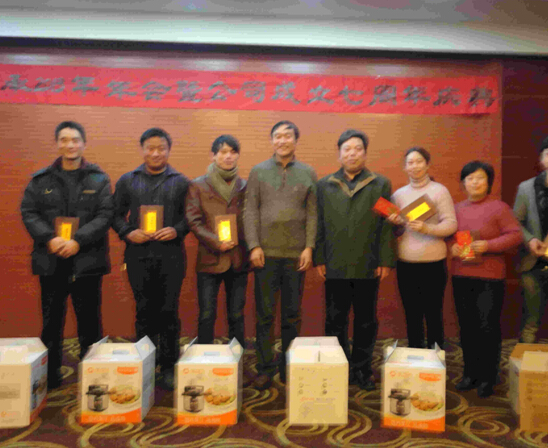 公司对2012年度先进员工获得者进行了表彰,由王景夏总经理、顾风建副总经理为获奖者颁发荣誉证书、奖品和红包。