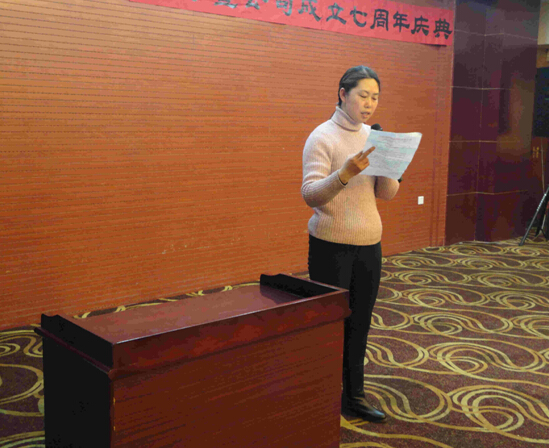 先进员工代表刘香凤代表全体员工发表工作感想。